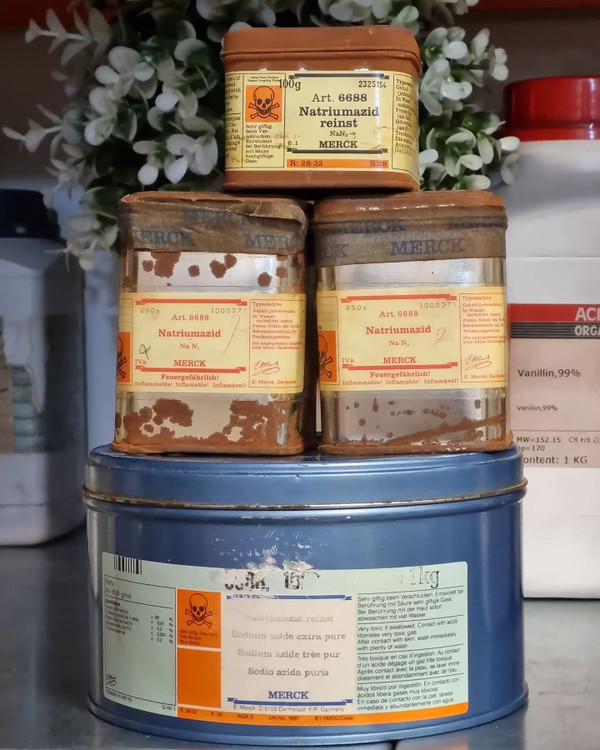 سدیم آزاید برند:مرک آلمان کد:106688 واحد:۱ کیلوگرم، ۱۰۰گرم ۲۵۰گرم