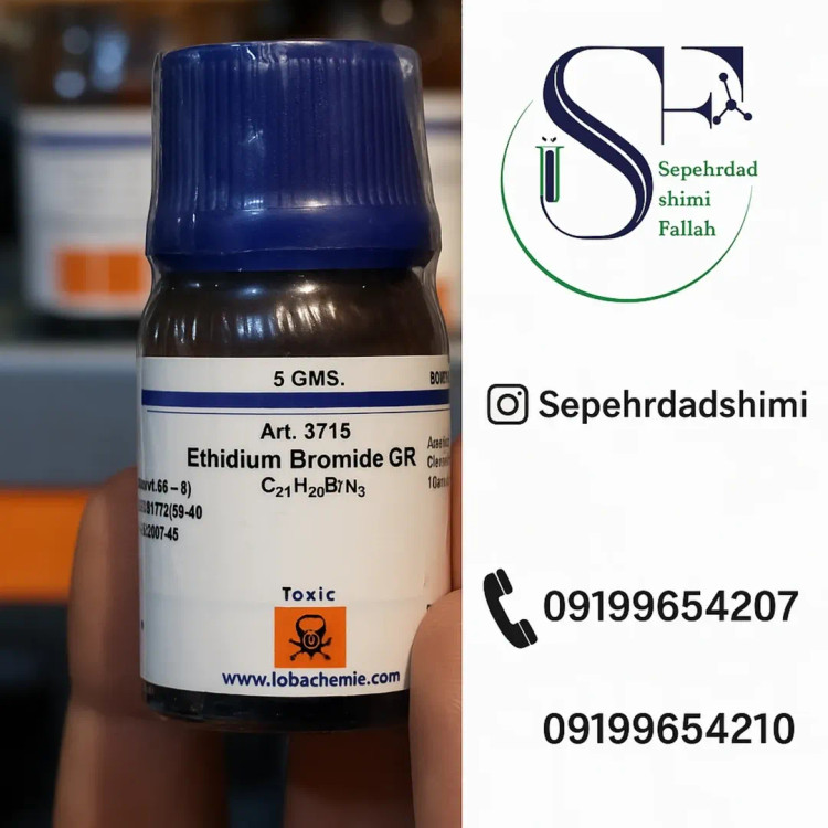اتیدیوم بروماید (Ethidium Bromide) با خلوص GR، محصول برند Lobachemie، ترکیبی ضروری برای آزمایشگاههای تحقیقاتی و بیوشیمی است ماده به عنوان عامل اصلی رنگآمیزی DNA و RNA در ژلهای آگارز استفاده میشود و کیفیت بالای آن تضمین کننده وضوح و دقت نتایج شماست.