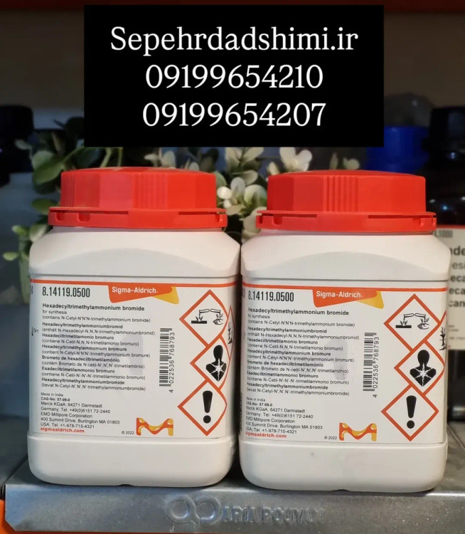 هگزادسیل تریمتیل آمونیوم بروماید (Hexadecyltrimethylammonium Bromide) با خلوص بالا و عملکرد پایدار از برند معتبر Merck آلمان ارائه میشود و بهطور گسترده در سنتز شیمیایی، فرمولاسیونها و تحقیقات علمی استفاده میگردد.