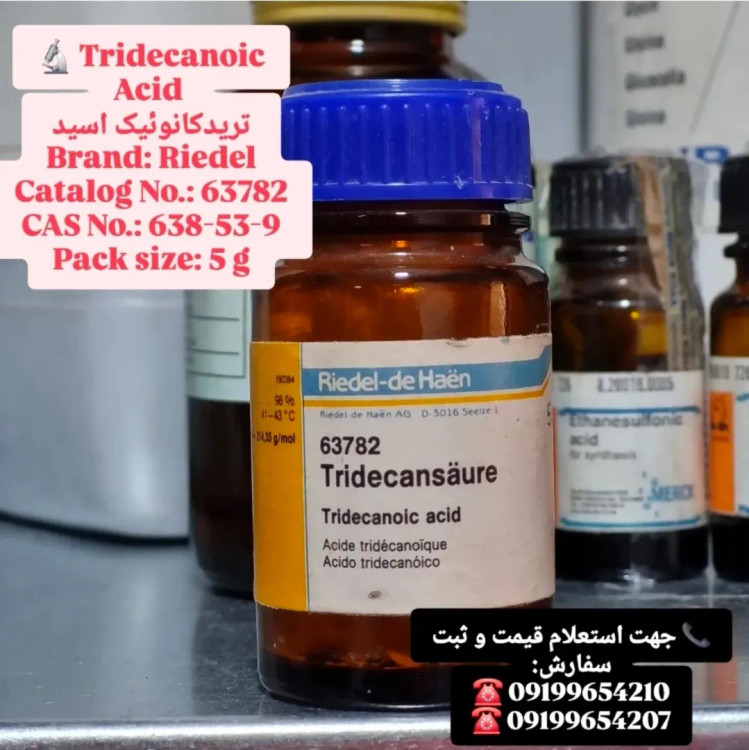 تریدکانوئیک اسید یک اسید چرب با زنجیره متوسط است که در تحقیقات شیمی، سنتزهای آلی و آنالیزهای آزمایشگاهی کاربرد دارد. این ماده با خلوص بالا و کیفیت تضمینی برند Riedelde Haën، مناسب برای آزمایشگاههای حرفهای و پروژههای تحقیقاتی است. ویژگیها: کیفیت تضمینی و اورجینال بستهبندی استاندارد ۵ گرم مناسب آنالیزهای حساس و تحقیقات علمی CAS: ۶۳۸۵۳۹