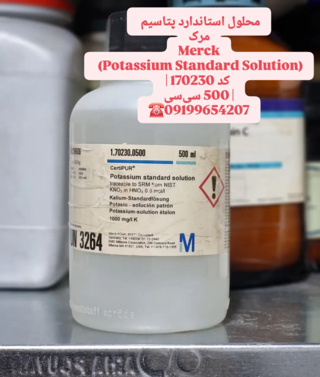 محلول استاندارد پتاسیم (Potassium Standard Solution) از برند معتبر Merck با کد 170230، یکی از محلولهای مرجع پرکاربرد در آزمایشگاههای شیمی، آنالیز دستگاهی، کنترل کیفیت و تحقیقات علمی میباشد. این محلول با غلظت دقیق و کنترلشده تولید شده و برای کالیبراسیون و صحتسنجی دستگاههای آنالیز مورد استفاده قرار میگیرد. دقت بالا، پایداری مناسب و کیفیت تضمینشده از ویژگیهای اصلی این محصول میباشد.